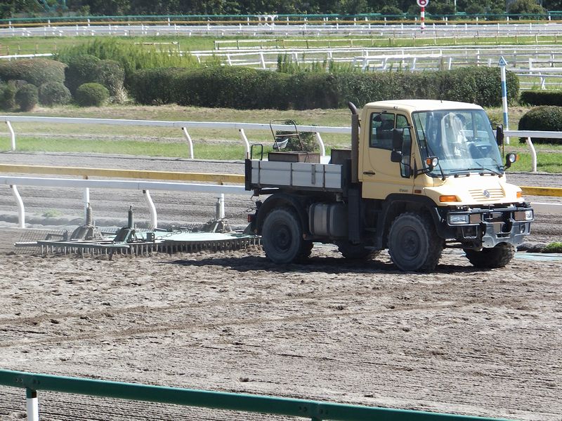ハロー掛けは新旧のウニモグを使用していました。っていうか、コース整備する車って、競馬場に行くたびに、つい気になってしまうんだよなぁ。