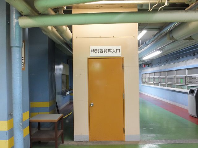特別観覧席へはスタンド1階西側に専用のエレベータホールがあるのですが、スタンド内を色々と探索していた関係で、3階西側にある階段から上りました。っていうか、この階段が独特の佇まいだったというか。