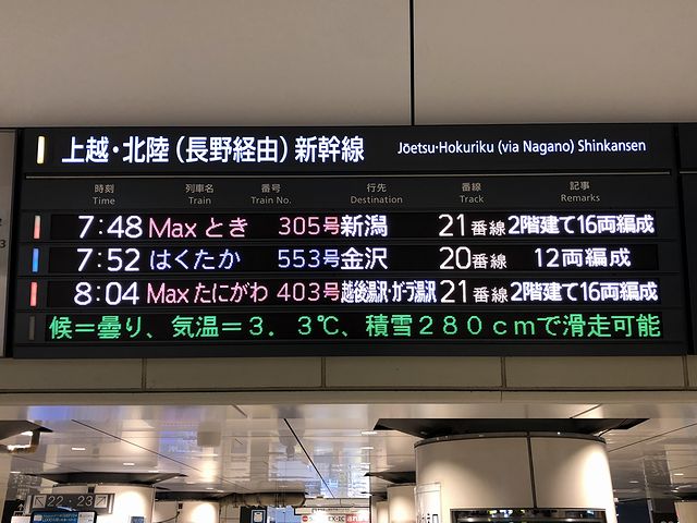 加えて、個人的には現在、スキーやスノーボードはやっていない(かつて付き合いでスノーボードを少々かじっただけ)なので、なかなかガーラ湯沢駅まで行く機会がないため、これで、E4系乗車とガーラ湯沢駅訪問を一度に果たしてしまおうかと。