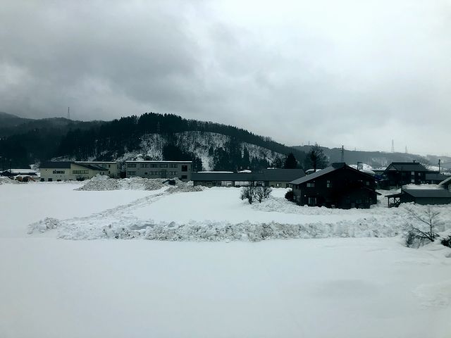 先程とは反対側の席に座って外を眺めるものの、基本的にはトンネルが多く、それ以外も雪に覆われていて同じ印象の景色が流れるなか、虫川大杉駅に停車。