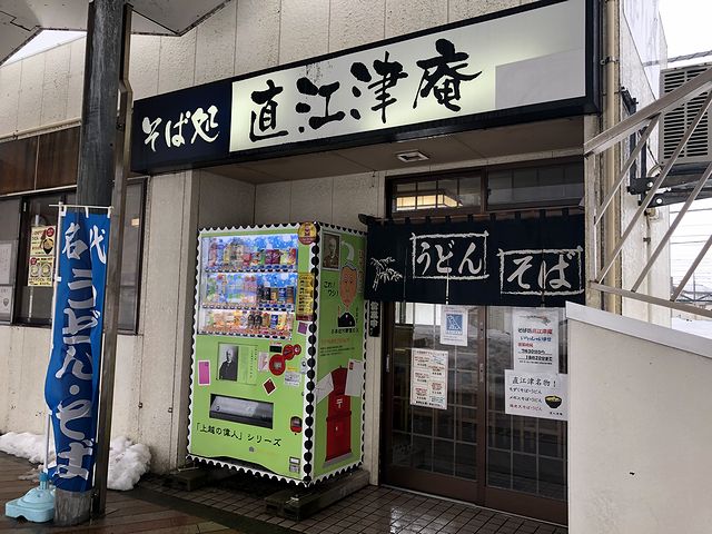 ですが北口を降り、そのまま線路に沿って進んだところにある駅そばのお店は、以前と同じ位置に。もっともこちらも、記憶にない「直江津庵」という屋号が付いていましたが。