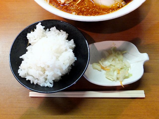 辛味噌そば(激辛) 810円 + 辛ネギ 160円 半ライス 100円 こちらの辛味噌そば(激辛)は前回いただいたのですが、今回は更に辛ネギを追加。というわけで、激辛味噌ネギといった感じになったのですが、これがまた。ちなみに半ライスは、最初に辛ネギの一部を移植して1/3ほどいただいた後、最後に残ったスープに入れて2度美味しいというか、これっていつも『山』でやる食べ方だよなぁ。