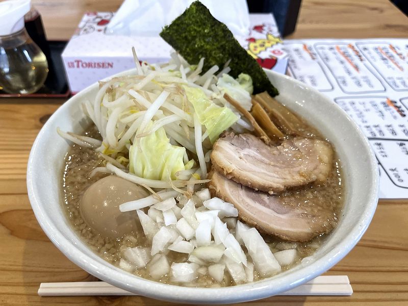 (この記事の公開は8月ですが、この記事のお店を訪れた当時は)梅雨入りしたら急に寒くなり、ちょっと前まで着ていた春秋冬のジャケットやらパンツやらを引っ張り出して着ている今日此の頃の私ではありますが、そんな時はことさら温かいラーメンが恋しくなり、高根沢町のこちらのお店まで。店頭の駐車場がいっぱいで、バイクを向かい側の砂利敷きの駐車場に停めましたが、こういう時、クルマ用の区画に停めちゃって良いのか、バイクの免許を取って1年以上経った今でも悩んでしまいます。