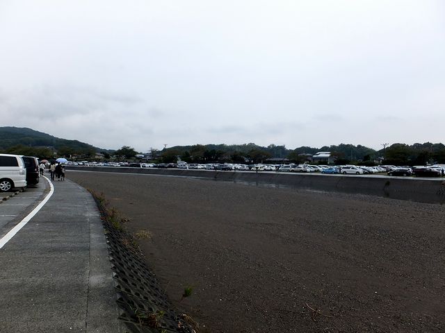 駐車場に停めようと案内看板や交通誘導員の誘導に従って進むのですが、結局は五十鈴を渡ってその川沿いのB6駐車場というところへと停めることに。それにしても、まわりに停められたクルマのナンバーを見ると、東海、近畿地方のものが多いのは当然として、北は東北、南は九州地方からも来ているようですね。さすがは日本一の観光地の一大イベントの年というか。