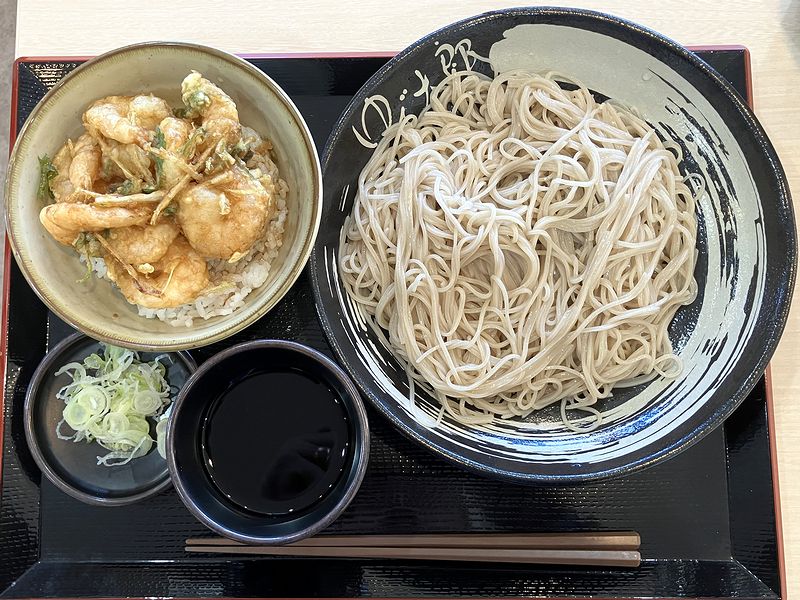 【ほぼ海老だけのミニかきあげ丼セット(冷) 850円 + そば大盛 100円】