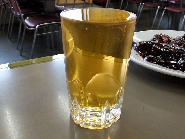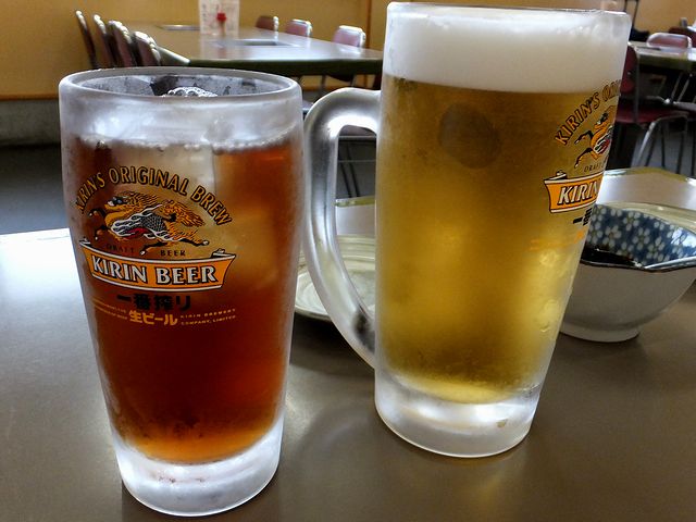 【左】 ウーロン茶 210円 と 【右】 生ビール(中) 550円