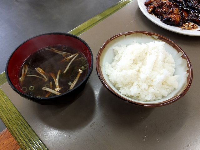【左】 赤だし 210円 と 【右】 ライス(小) 160円