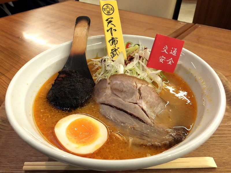 こちらは、同行者がいただいたもの。注文の際、フードコート内にある他のお店でもと言ったのですが、ネタにと気を遣って期間限定のこちらを頼んでくれたのかもしれません。それでせっかくなので味見させて貰ったのですが、ピリっとスパイシーな味噌スープをベースに、しゃもじにくっついている焼き味噌を溶けば、その香ばしさとコクとが良い感じに効いてきて、これがなかなかのお味。それにしても、こういったお店で期間限定のキャンペーン商品を提供するに当たって焼き味噌を別添えとは上手いこと考えたと思うのですが、なぜ三重県で信長公なんですかね?