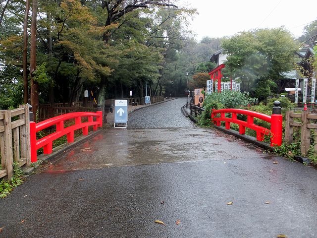 広場奥の赤い橋を渡ったところが、登城道の入口。そこにはかつて中御門と呼ばれる門と、番所があったそうです。そして写真右手はかつて松の丸(二ノ丸)だったところで、現在は三光稲荷神社と猿田彦神社が鎮座しているのですが、現位置には昭和39年(1964年)に移転してきたとのこと。で、三光稲荷神社は元々築城主である織田信康公の保護を受け、その後城主成瀬氏が守護神としていたそうです。