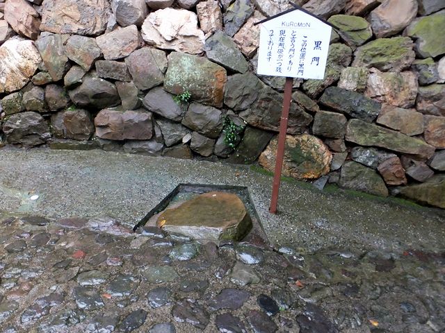 登城道の途中にあるのが黒門跡で、現在は礎石が1つ残るのみ。