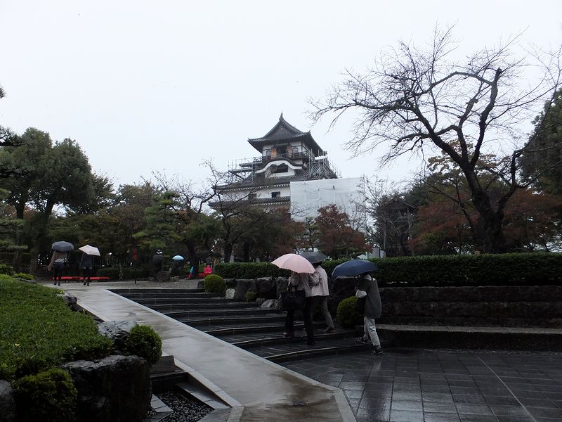 今回の旅の計画を立てるにあたって、日本100名城のうち必ず寄ろうと思っていたのが、ちょっと前に記事にした松坂城と、そして後で記事にする予定の岐阜城。そして、時間に余裕があればと思っていたのがこの犬山城でした。で、松坂城の記事でも書いたとおり、本来旅の二日目に予定していたのを初日にまわってしまったので、時間的にかなり余裕ができることに。ですが天気は生憎の雨。しかも、昨日は小雨程度だったのが、今日は本降りといった感じの降り方です…。でも、折角このあたりまで来たのだからということで、そんな中を犬山城に向けて出発しました。