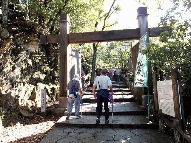 始発のロープウェイに乗り、山頂の天守近くにある岐阜城資料館を目指しますで、ロープウェイを降りてすぐのところに、なにやらいわくありげな冠木門がありますが、ここは信長公の天下統一の大志を讃え、後生に建てられたもののようで…。