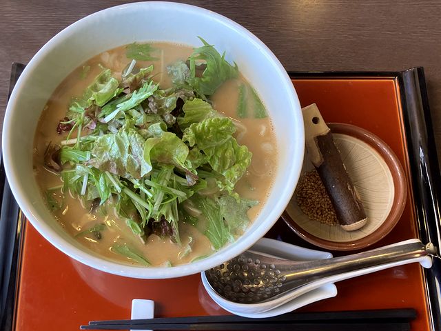 そんなわけで今回私は、限定メニューであるこちらの品をチョイス。券売機のところに写真付きの説明書きが貼ってあったものの、それだけでは、煮干しと胡麻って、どんな相性なのか想像つかなかったもので。