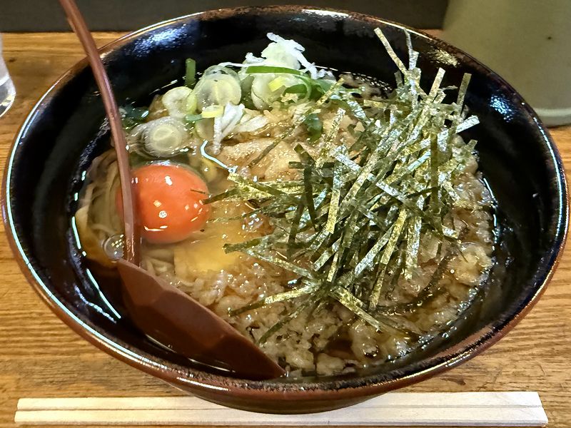 そして具の油揚げは、良い味加減。あとツユの味がしっかりしているので、生玉子を崩しても味わいがボケないのがとっても嬉しいです。