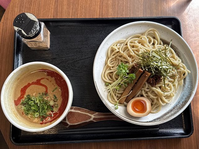 こちらは、家人がいただいた品。提供時「坦々つけめんの2辛です」と言われたので、注文間違われたのかと思ったものの、混んでいることもあって家人もそのまま食べはじめました。で、味見させて貰ったところ、辛さ的にかなり控え目だったので、注文通り1辛だったのかもしれません。