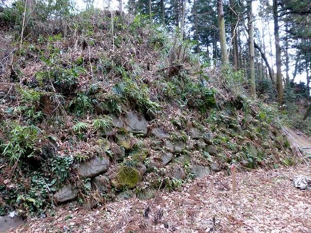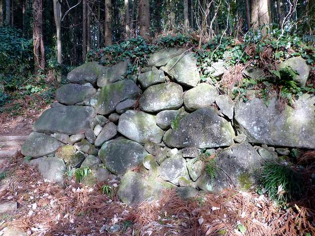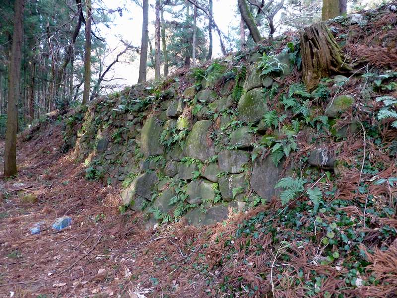 以上、中央コースだけなら所要約20分と書いてあるところ、何だかんだで1時間以上かけて見てまわったのですが、まず、大堀切をはじめとする堀のダイナミックさに圧倒されました。これだけの土木工事を、鍬ともっこだけで成し遂げたことは、驚嘆に値するといいますか。また、城内各所に残る、苔むした石垣はとても良い味を出していました。そして、廃城になって400年以上経つのに、曲輪の形状がしっかり残っていたのも素晴らしく、そこで色々と想像するのも楽しかったです。そんなわけで、来る前は正直どんな物かと思っていたのですが、実際に見てみると、素直に申し訳ありませんでしたというか、戦国時代屈指と言われる山城のスケール感を実感することが出来ました。(今思い返しても、本当にテンション上がりまくりだったなぁ。個人的には、こういう城跡って、かなり好きかもしれません。)