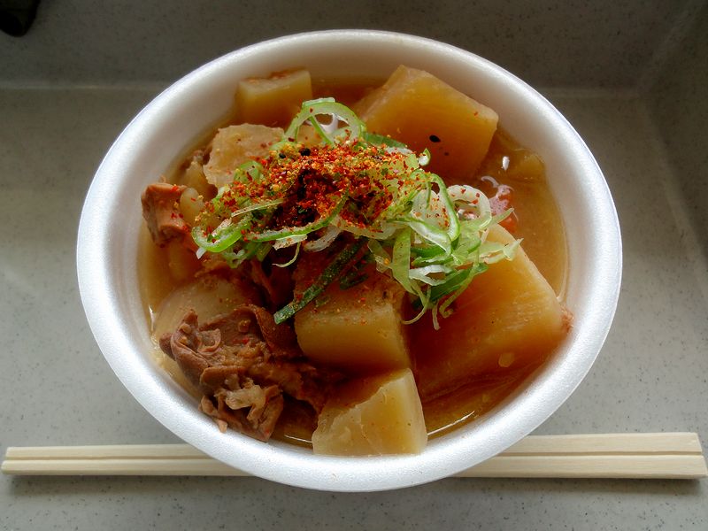 競馬場では大定番のもつ煮ですが、福島競馬場といえばこちらの物。個人的にも行く度にいただいているのですが、甘みが控えめであっさり目の味付けが個人的には好みというか。今回のはやたらと大根が入っていましたが、それがまた染み染みのトロトロで、それはそれで良し。