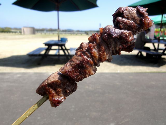 固定式の売店が無くなってしまった替わりかどうかはわかりませんが、馬場内広場に出店していた移動式店舗がこちら。あとで調べてみると、福島を中心に活動するお笑いエンタ集団『みちのくボンガーズ』プロデュースのお店らしいです。(やけに人気の女装した店員さんがいるなどと思っていたら、そこの芸人さんだったんですね。)で、前述の地ビールと一緒にいただいたのがこちらなのですが、ピールとの相性は言わずもがな。何ていうか、これも間違いのない味ですね。