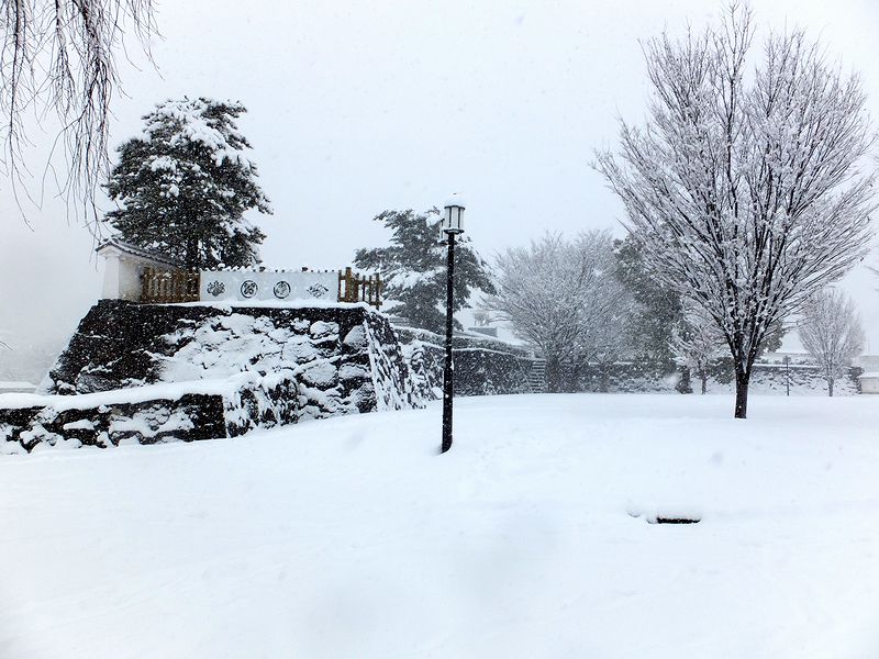 というわけで甲府城だったのですが、市街地というか駅のすぐ近くにある城跡は、コンパクトな中にも曲輪や石垣がしっかりと残っていて見所が色々と有るというか、個人的に好きなタイプの城跡でした。でも、今回、全て持って行ったのが、甲府ではン十年ぶりという大雪。甲府で雪景色って結構珍しいと思てますし、また、雪化粧の城跡というのはとても美しいものではあるのですが、それでも限度というものが。(場内でクロスカントリースキーやっている方が居たのには笑いましたが。)お陰で色々と見逃した部分もありますので、是非ともまたお伺いしたいと思います。