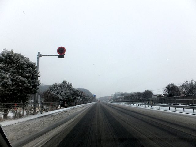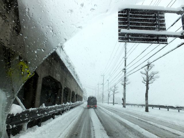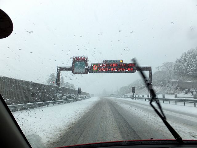 朝食後、移動を再開。今度は関越道から圏央道、そして中央道へと進んでいったのですが、雪の降り方は相変わらずなれど、路面は全体的に白くなり、場所によっては区画線が見えなくなっている箇所も出てきました。普通、夜明けから時間が進むと共に気温の上昇により、雪は湿って積もりにくくなる筈なのですが、逆に雪深くなってきている気が…。また、ラジオの天気予報でも「不要な外出は避けてください」などと言っています。ですが、そんな状況にもかかわらずこの時はまだ脳天気だったというか、久しぶりの雪道の運転にテンションが上がっていて、また、甲府の方はそれ程降ってはいないだろうなどとたかを括っていたんですがね。