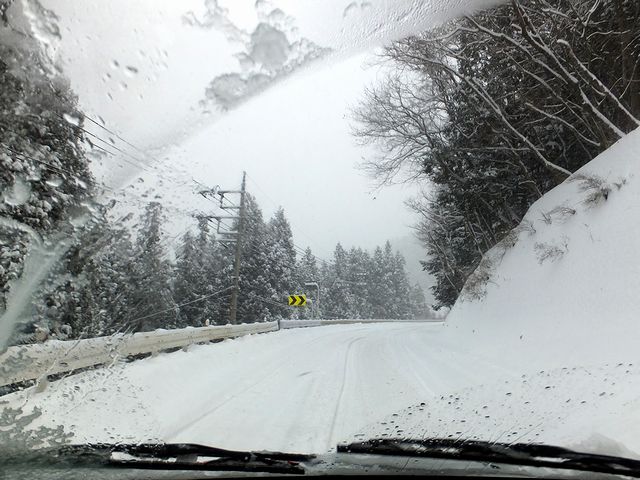 それで、あとはさっさと帰るだけになったのですが、ラジオなどの情報によると、この時点で中央道は通行止め。それで、カーナビ代わりのiPhoneアプリにお伺いを立てたところ、山梨県道6号甲府韮崎線から国道140号経由で秩父に抜けるルートが出ました。なので、今度はそれに従って粛々と走るだけなのですが、雪は相変わらず情け容赦なく降り続いていて、路面は完全に雪に覆われた状態。そんな中、(雪道の運転の経験が無いっぽい)ノロノロ運転のクルマに頭を抑えられつつも、県境の雁坂トンネルまであと少し(たしか5,6kmのところまでは来ていたかと。)と迫ったところで、トラックやワンボックスなど数台の車がスタックして道を塞いでいる状況に出くわしました。現場は緩い上り坂で、こちらのクルマは二駆。グズグズしていると降り続く新雪でこちらもスタックする恐れがあったので、申し訳ないけどその手前で何とか切り返してUターン。引き返しつつ他に帰る道を探すことにしたのですが、それから程なくして、下り坂を走行中に突如クルマがハーフスピン状態に陥りました。で、何とかカウンター3回くらい当てて(おつり貰いすぎ…。)無様ながらも立て直すことはできたのですが、焦りからか限界を超えてしまっていたようで…。本当に、事故にならなくて良かったというか。