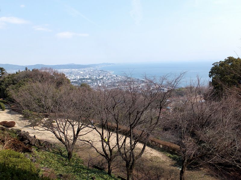 二ノ丸の最北端には展望台があり、先程確認できなかった小田原城を見ようと思ったのですが、今度は木が邪魔で…。
