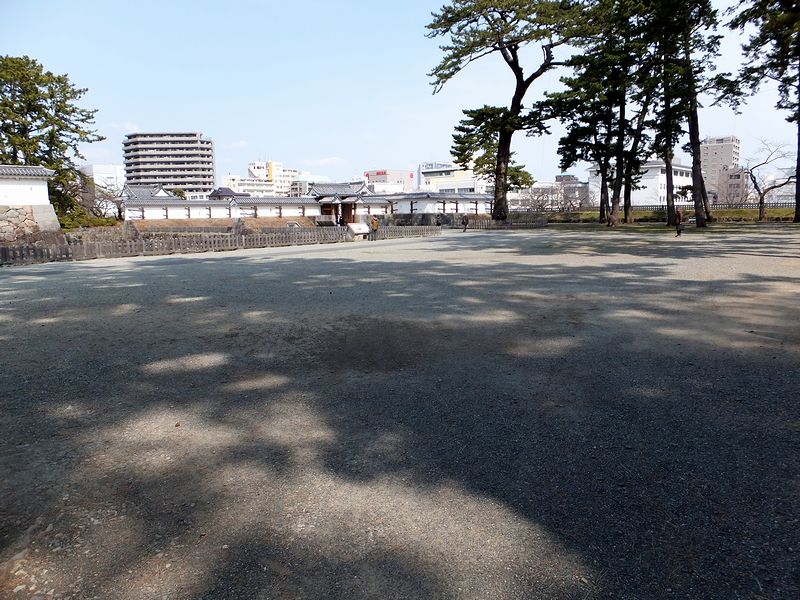 馬出曲輪から二の丸へ入るところにあるのが、平成9年に復元された銅門で、二の丸の正門にあたるそうで。ちなみに名前の由来は、大扉などの装飾に銅が使われているからだそう。で、この巨大な櫓門って、戦国BAS○RAで見たことが!