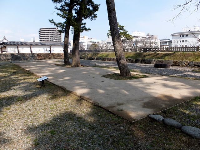 曲輪の南側にあるのがが馬屋跡。現存している彦根城の馬屋を参考に計算すると、14頭の馬を繋いでおける広さだったとのこと。またこの馬屋は徳川将軍家来の登城時専用だったということで、将軍家の威光と当地の重要性が感じられます。それと、その東側には登城者の待機所兼番所の大腰掛け跡が。