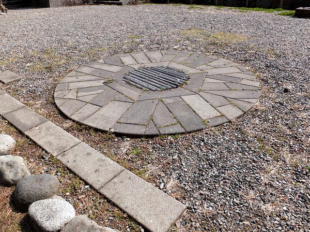 馬屋曲輪の北東には、平成21年に復元された角馬出と馬出門が。で、復元は発掘調査の成果などに基づき、構造まで再現されています。それにしても、復元とはいえこのようにそのものを目の前に出されると、馬出というものがどういうものかよく伝わってきますね。