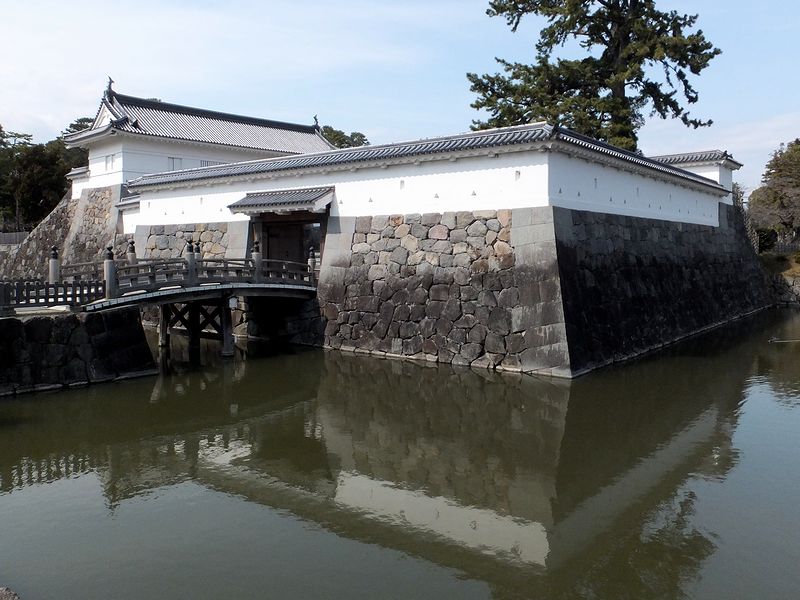 【小峰橋から見た堀と石垣】