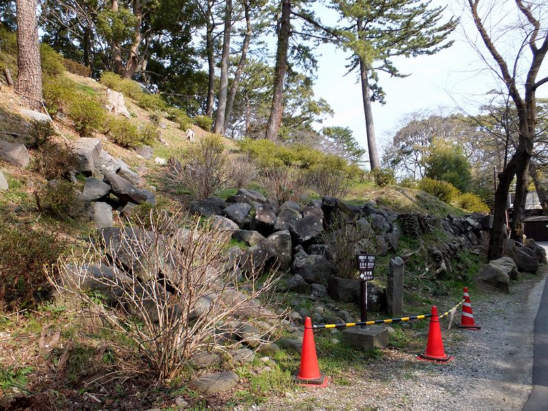 天守を出た後は、駐車場へ向かうために城内にある報徳二宮神社方面へと向かったのですが、その途中には崩れかけた石垣が。これはこれで趣があると思うのですが、安全上は、今後の修復が待たれるというか。