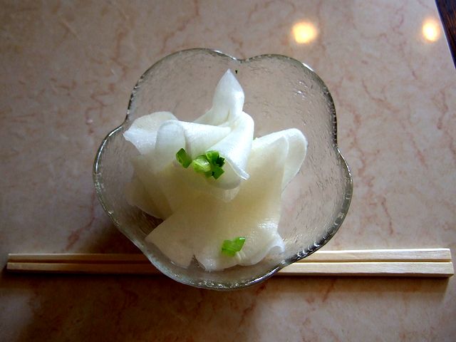 で、9月も半ばとなり、夜などはだいぶ過ごしやすくなってきたとは思うのですが、この日も昼間は30度オーバーの真夏日だったので、今回は素直につけ麺をお願いしました。それで、そのつけ麺。付け汁は、和風豚骨に隠し味で小海老が入った物。まさしく「花の季のつけ麺」という感じの味で、安心していただけるお味というか。また、平打ちの麺は、ツルツルっとした食感が何とも良い感じ。そして具は、揚げた茄子と青唐辛子(辛くない)がいかにも「終わりゆく夏の御馳走」といった感じで美味。タマネギの甘酢漬けは良い箸休めですし、それと天盛りにされたキュウリが薬味的な感じで良いですね。あと、チャーシューやメンマも本店同様のお味です。そして最後は、スープ割りで締めれば、満足。いやぁ、美味しかったですね。