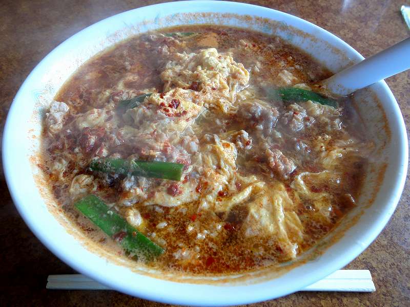 というわけでそのタンタンめん。以前某ラーメン本に載ったりもしたもしたのでご存じの方も多いとは思うのですが、ニンニク風味の塩味のスープに、たっぷりの唐辛子と挽肉、そしてふわふわの玉子に縮れ麺という組み合わせで、胡麻も山椒も使っていません。ですかこれが何ともクセになる味というか。ちなみに、辛味は個人的には丁度良いのですが、苦手な方は注文時にお願いすれば控えめにしてくれたかと。それと、今回は自重しましたが、お腹に余裕があれば、残ったスープにライス投入も旨いんですよね。