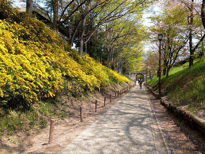 松代城の前に立ち寄ったのは上田城なのですが、実はそこにも、鉄道の遺構が。それは昭和47年に廃止となった上田交通真田傍陽線の公園前駅。真田傍陽線は昭和3年(1928年)に全通した上田と真田・傍陽(そえひ)を結んでいた当時の上田温泉電気軌道(後の上田交通)の路線で、バスの増便や貨物のトラックへの移行によって赤字から廃線という流れになったそうで。で、その真田傍陽線の線路を二の丸堀を通すことになり、上田城址公園及び園内にあった上田市公会堂の最寄り駅として公会堂下駅(その後、公園前駅に解消)が設けられたとのこと。