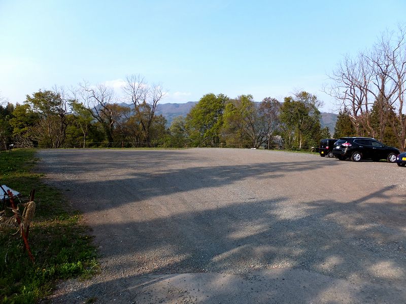 それで、前の記事で訪れた沼田城の後、だいぶ日も傾いてきた中、国道17号月夜野バイパスをちょとだけ北上。それで、「名胡桃城址前」という信号のある交差点のところが丁度駐車場の入口になっていました。また、駐車場と城跡の間には元レストランとおぼしき案内所があったのですが、丁度閉めてボランティアの方々?が帰られるところでした。