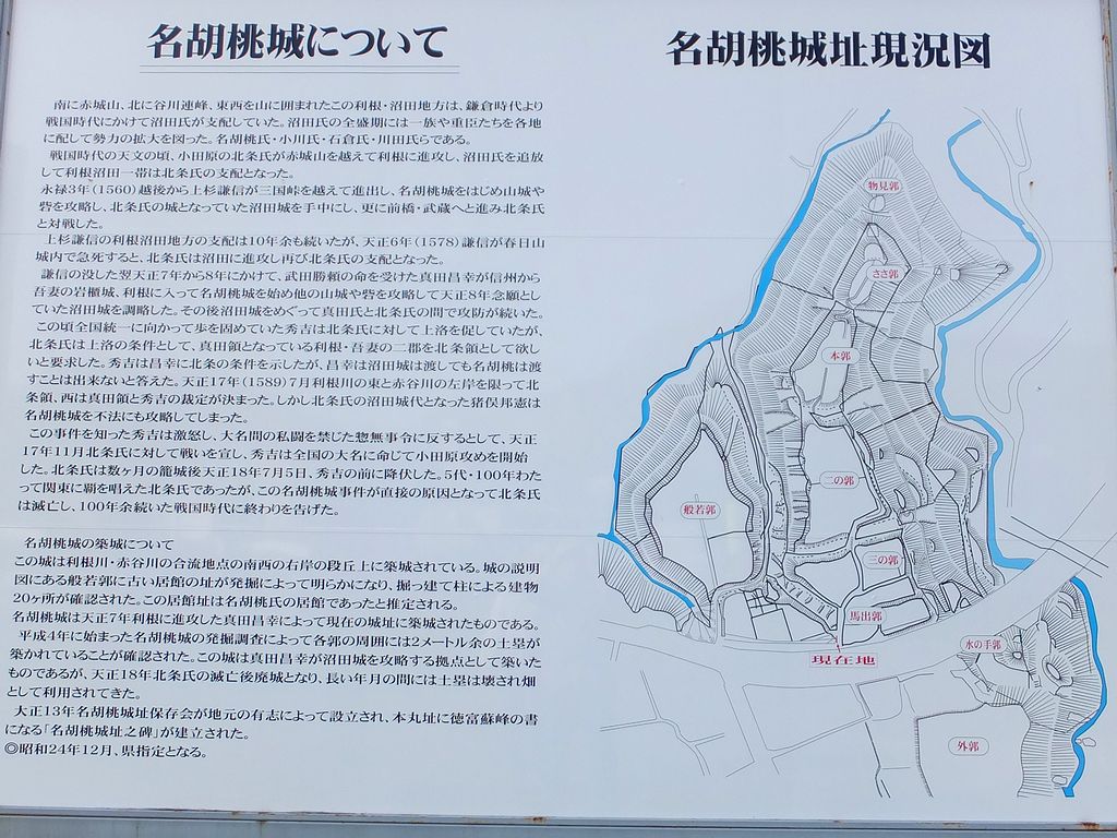 名胡桃城は、群馬県利根郡みなかみ町にある連郭式の山城。で、例によって、名胡桃城についてウィキペディアや群馬県のウェブサイトで調べたことをおぼえがきがてら以下に。