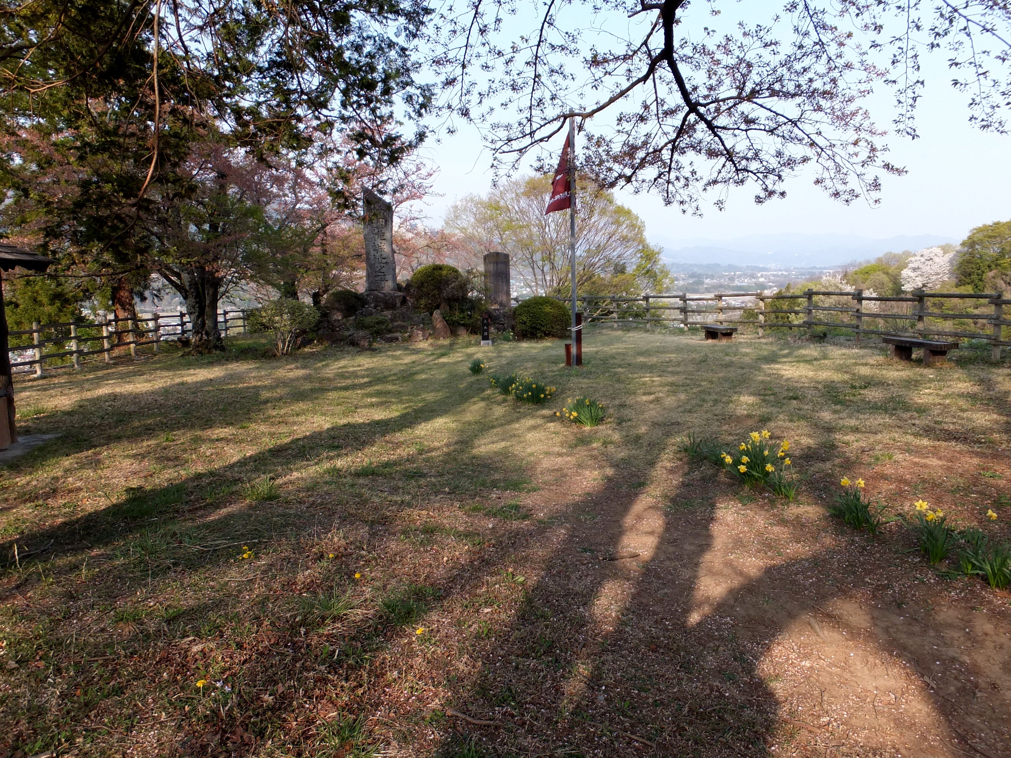 更に進んで本丸へ。入口の案内板では本郭となっていました。それでさすがに本丸だけあって整備されてます。ですが、面積的にはかなり小さく感じ、そんなところからもここは一般的な城では無く、砦というか前線基地っぽい感じが伝わってきます。