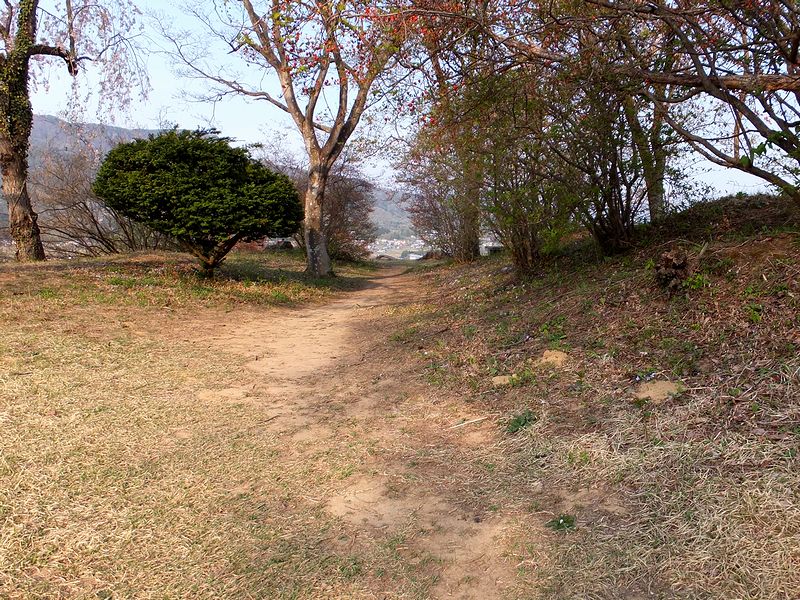 当たり前っちゃ当たり前ですが、三の丸の先は二の丸。で、この二の丸の入口はかつて、土塁による食い違い虎口があったらしいです。