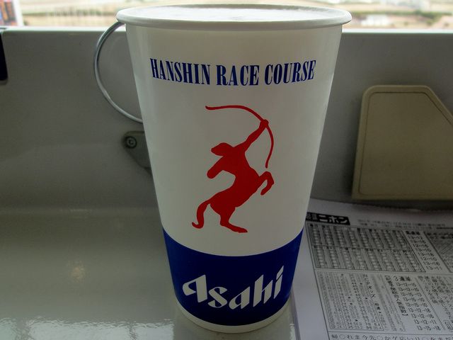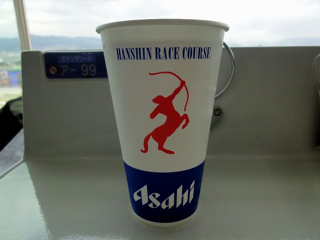 ビールの大きさは2種類ありました。で、生ビールの紙コップには、阪神競馬場のトレードマークであるセントウル像がプリントされていました。