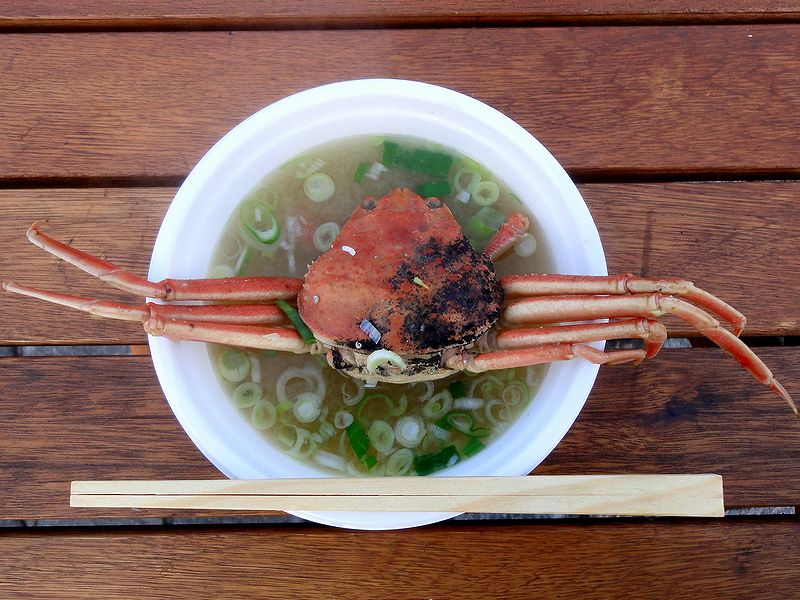 いわゆる、カニの味噌汁なのですが、小振りのズワイガニが一匹丸々入っていたのに少々驚いたというか。カニには外子と内子がビッシリ入っていて食べ応えがあり(おかげで暫く手がカニ風味になってしまいましたが。)、汁もカニのだしがたっぷり出ていて、そして何より、とても暖まりました。