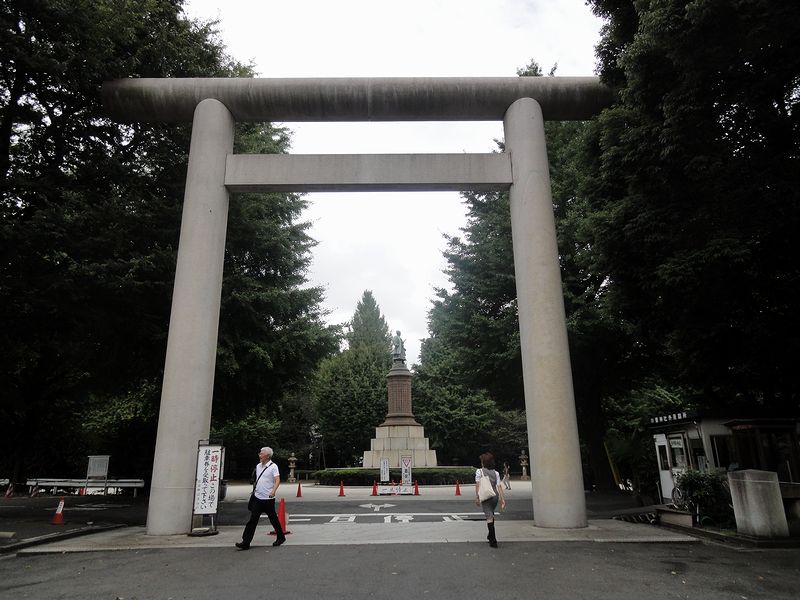 こちらが、靖国通りに面したところにある石鳥居。そして、石鳥居の奥に見える銅像は、この靖国神社(東京招魂社)建立に大きな役割を果たした大村益次郎で、日本初(1893年制作)の西洋式銅像とのこと。で、大村益次郎像を左に折れると本殿へと続き、その間、第二鳥居、神門、中門鳥居、そして拝殿があります。そこでまずは、手水舎でお清めしてから参拝をば。