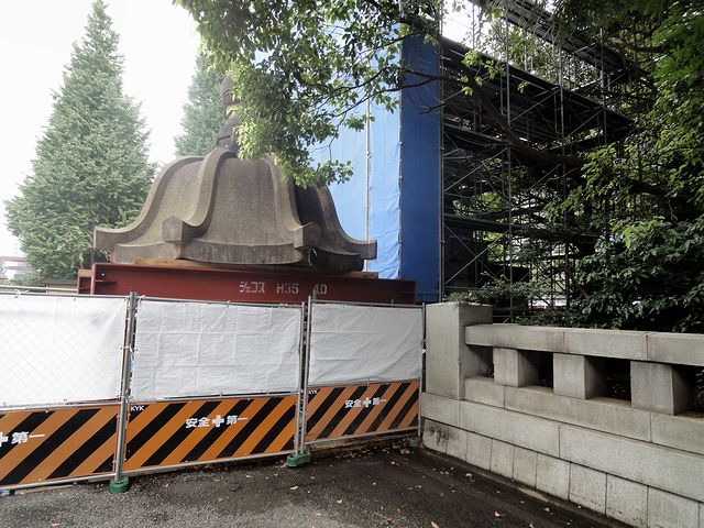 靖国神社では、まずお参りを済ませてから、資料館の『遊就館』を見学。その後遊就館内の喫茶コーナー、そして境内の休憩所にて立て続けに昼食をいただきました。それにしても、平日の朝にもかかわらず、靖国神社には結構な数の参拝者がいてびっくり。それと、先の東日本大震災で倒れた石灯籠が痛々しかったです。
