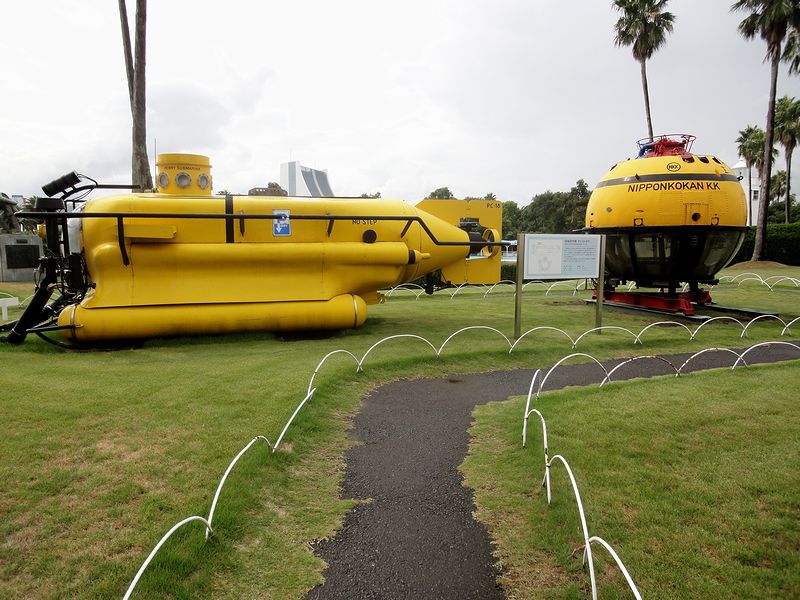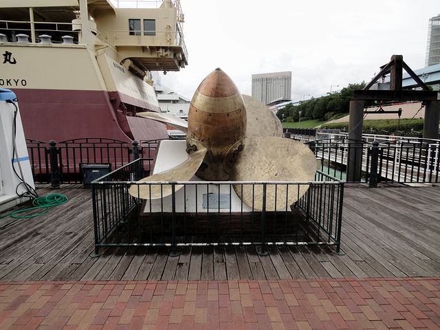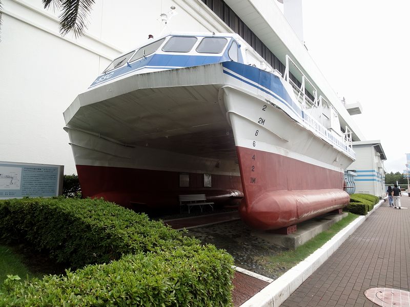 まずは、屋外展示物をひととおり見学。それにしても、いくら海にまつわる物とは言え、屋外に置かれたそれなりに古い展示物がまだ十分きれいに見られるというのは、維持管理がきちんとなされているとこですね。