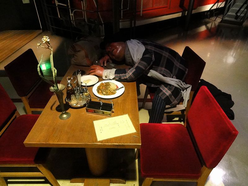 【青函ワールドにて酔いつぶれるオッサンとDE10(奥)】