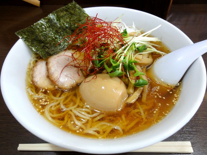 スープは、魚介系素材がメインでしょうか。ですが、冷やすと魚特有の匂いが目立ってしまいがちなところ、こちらのスープは、繊細で、何とも食欲をそそる香りというか。また、ゴマ油っぽい香も感じられるのですが、表面に浮く油からでしょうか?あと、天盛りにされた糸唐辛子の香りも良く、これらが実に良いアクセントというか。そして旨味もしっかりと感じられ、味加減も丁度良く。うーむ。これは美味しいスープです。また、自家製麺される細目の麺は、暖かいラーメンと共通でしょうか?冷やす事によって、当然歯応えはアップするのですが、必要以上に硬くなくて良いですね。そして具は、前回も感心したチャーシューですが、冷たいラーメンの中に入っても美味しい事を発見。あと前回に続いて追加した玉子も、やっぱり良かったです。