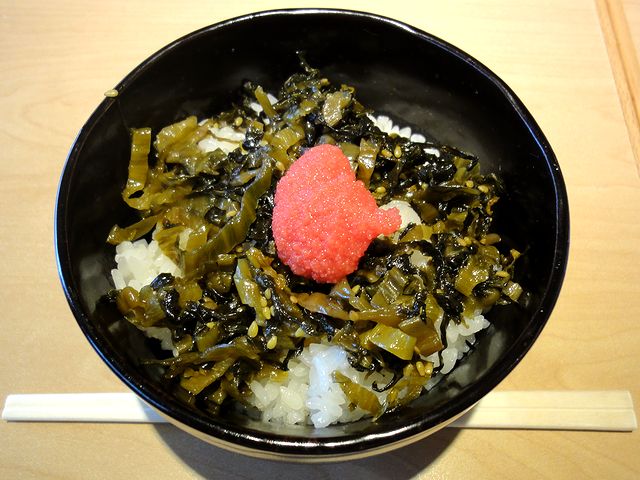 こちらは、つけ麺と一緒にいただいたもの。お味の方は、見た目どおりという感じ(ちなみに高菜は辛くないタイプです)で、わりとこってりとしたつけ麺とも合っているかと。また最後に、スープ割りしたつけ汁を投入していただいてみたところ、これが思いの外いけてました。