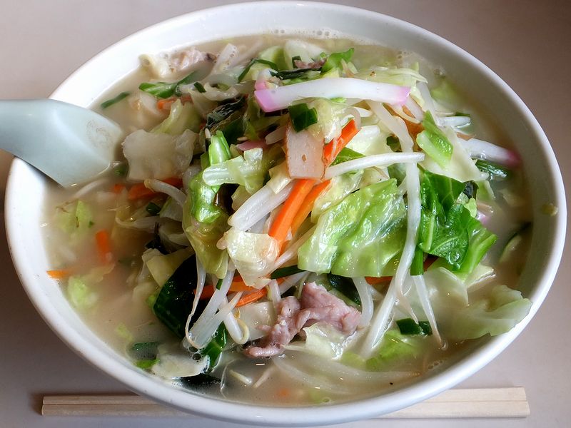 チャンポンがいただきたくなるとお伺いするこちらのお店ですが、今回もそんな感じで。で、お品書きを見て驚いたのですが、4月に消費税の税率が変わったにもかかわらず、お値段なんと値上げ無し!個人的には、ちゃんと取るものは取ってもらってかまわないというか、それで値上げになってもこれまでと変わらずお伺いするつもりなのですが、こういう店主さんの心意気はとても有り難く思います。と、前置きが長くなりましたが、お味の方は、慣れ親しんだいつもの長崎チャンポン。スープに溶け込んだ野菜など具の旨みがチャンポン麺に絡んで、もう、という感じで。本当に、いついただいても安心の味ですね。