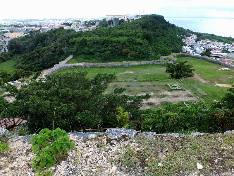 二の郭から更に一段高いところにあるのが、勝連城で最も高いところにある一の郭。ここからの眺めは、なかなかのものでした。ちなみに現在は郭を囲む城壁がとても低くなっていますが、かつてはもっと高かったと考えられています。