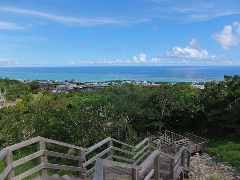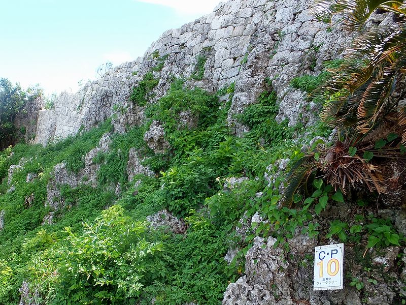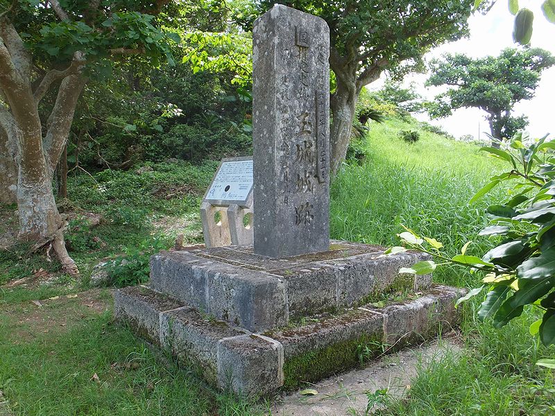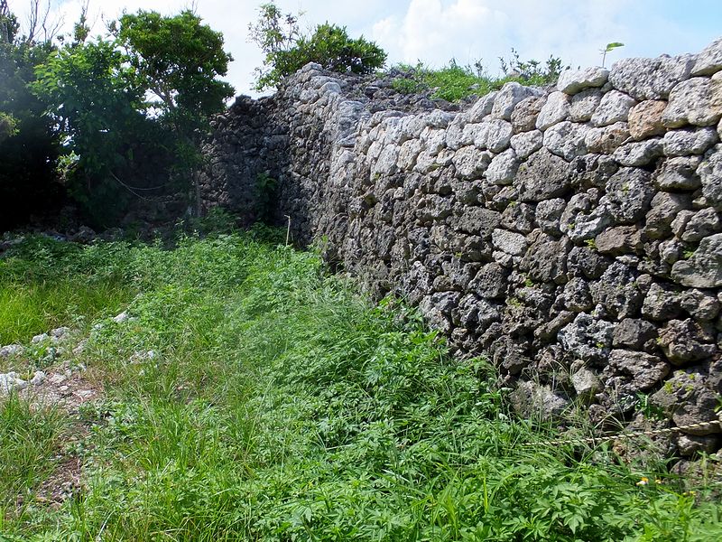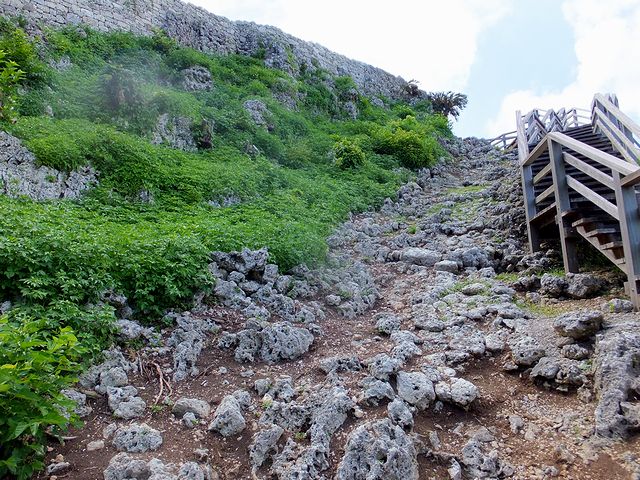 現在残るグスク跡は、主郭の他、二の郭、三の郭を備え、野面積の石積などからグスク期の初めの頃に築かれたものと考えられているのですが、沖縄戦での破壊、そして戦後は石積に使われた石が米軍基地の建設資材として持ち去られてしまったこともあり、主郭の周辺のみが原型をとどめている状態となっているそうで。また、1987年(昭和62年)に、国の史跡に指定されました。