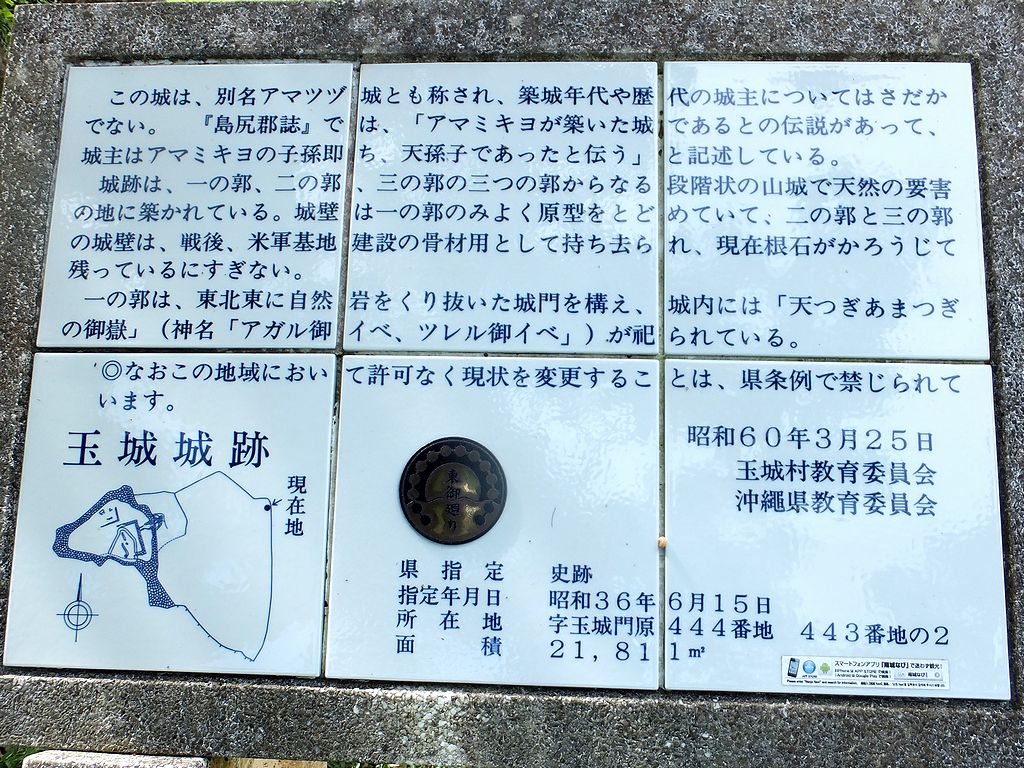 玉城城は、沖縄県南城市にあるグスクで、別名はアマツヅグスク。琉球開闢の神であるアマミキヨが築いたという伝説があり(なので沖縄最古なんですかね。)、また、主郭内にある天つぎあまつぎ(雨つづ天つぎとも)御嶽(うたき)は、琉球の信仰においてもっとも神聖な琉球開闢七御嶽の一つにして、ニライカナイ信仰に基づく聖地巡礼「東御廻り(あがりうまーい)」の際に立ち寄る御嶽の一つにもなっています。